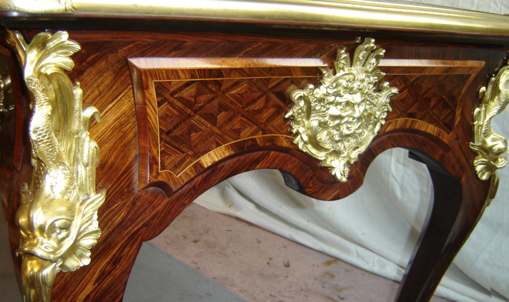 Réalisation de parties manquantes et collage d’éléments relevés sur des matériaux précieux tels que le laiton, l’écaille de tortue, l’étain, l’os, l’ébène et autres essences de bois.